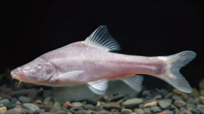 Researchers have announced a new species of blind cavefish that lives deep in the underground rapids of the Wujiang River in China, with eyes that look like black dots under its skin.