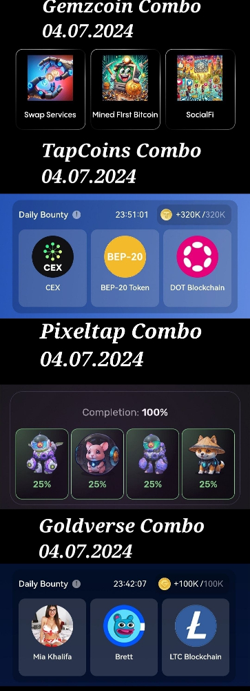 Hamster Kombat Cipher, Pixeltap, Gemzcoin and other games Combo Cards for 4th of July