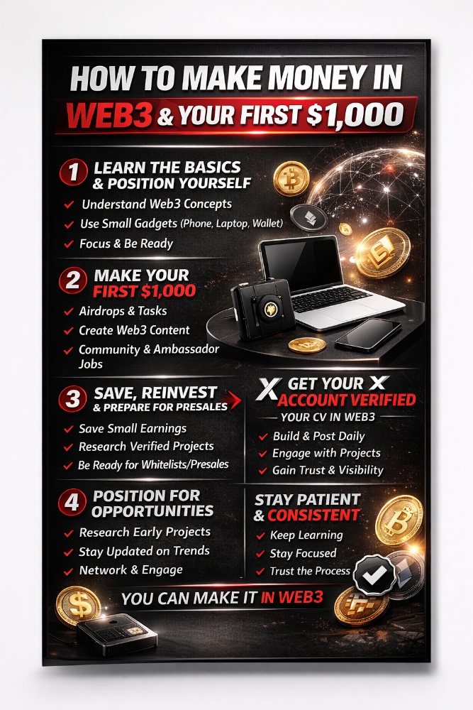 How to Make Money in Web3 (And Your First $1,000)A lot of people enter Web3 because they see others making money fast, They see screenshots of profits, airdrops, presales, and big wins, What they don’t see is the patience, learning, losses, consistency, and positioning that happens behind the scenes