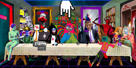 First Supper (2020), by Alotta Money, Sparrow Reed, Coldie, Connie Digital, Hackatao, Jose Bellini, MLIBTY, Matt Kane, Rutger Van Der Tas, SHORTCUT, TwistedVacancy, Vansdesign, and XCOPY. In collection of MetaKovan