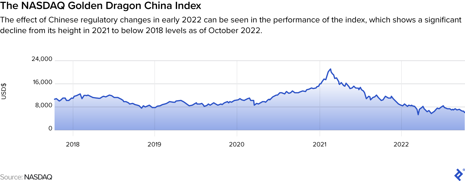NASDAQ’s Golden Dragon China Index tracks Chinese companies listed on US stock exchanges.