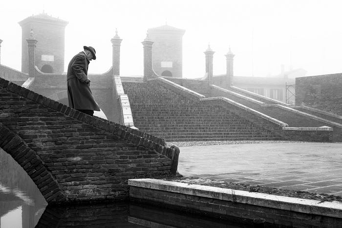 A timeless moment of an aging man walking through a historic area of Comacchio, Italy, on a foggy and bitterly cold winter day won fifteenth place. Francesco, the photographer and a native of Comacchio, was able to spot this man just early enough to get into position and wait for him to pass.