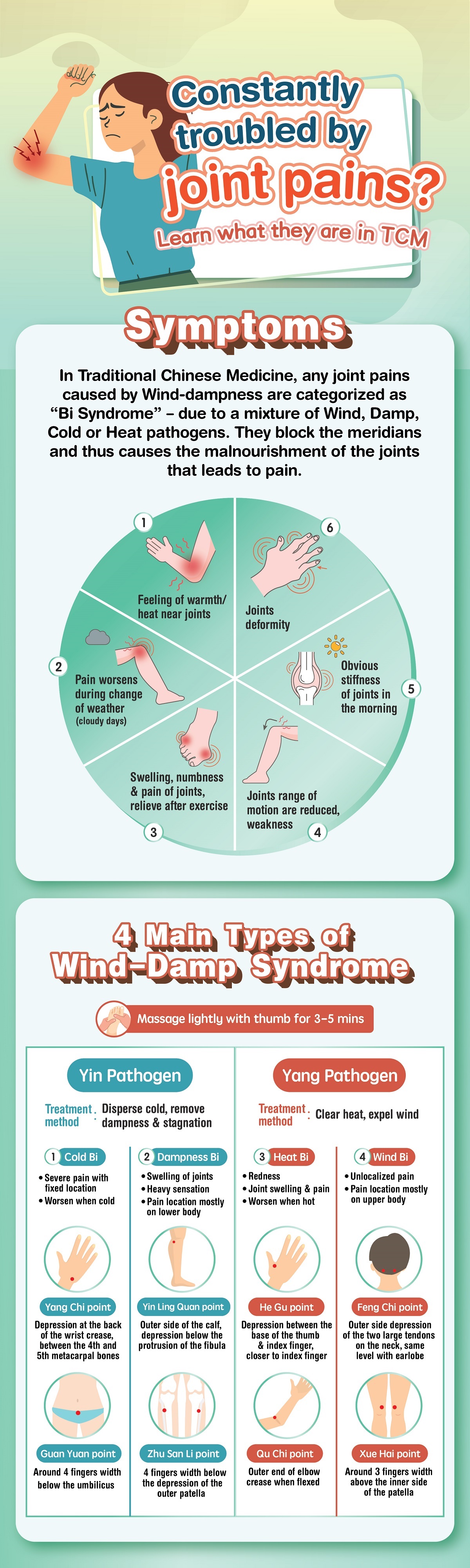 In Traditional Oriental Medicine, Wind–Dampness Syndrome (commonly associated with chronic joint pain and stiffness) belongs to the category of Bi Syndrome.