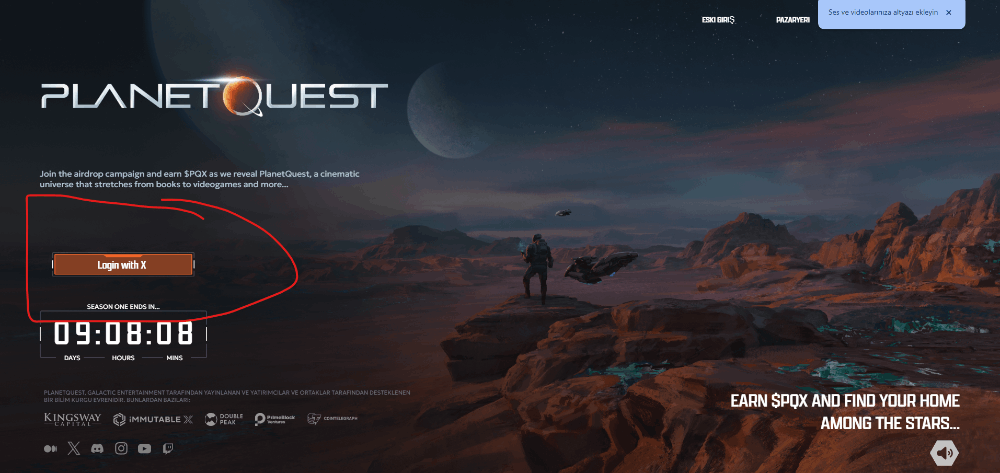 Kısaca, bu proje PlanetQuest tir ve şu anda token dağıtımı için web sitelerinde 1. sezonu başlatmışlar. Sezonun bitmesine 10 gün kaldı. İşte adım adım nasıl yapılacağı hakkında bilgiler