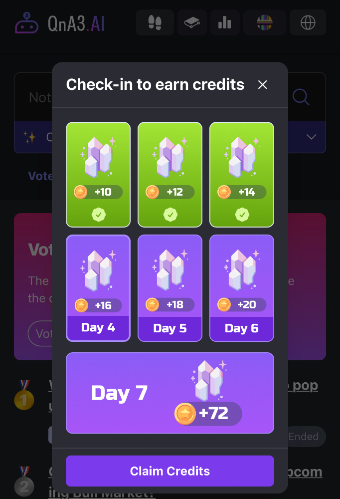All users can collect credit as daily check and users share referral link. You should use gass fee from #BNB network. Gas Fee is so less, Don’t worry 😉