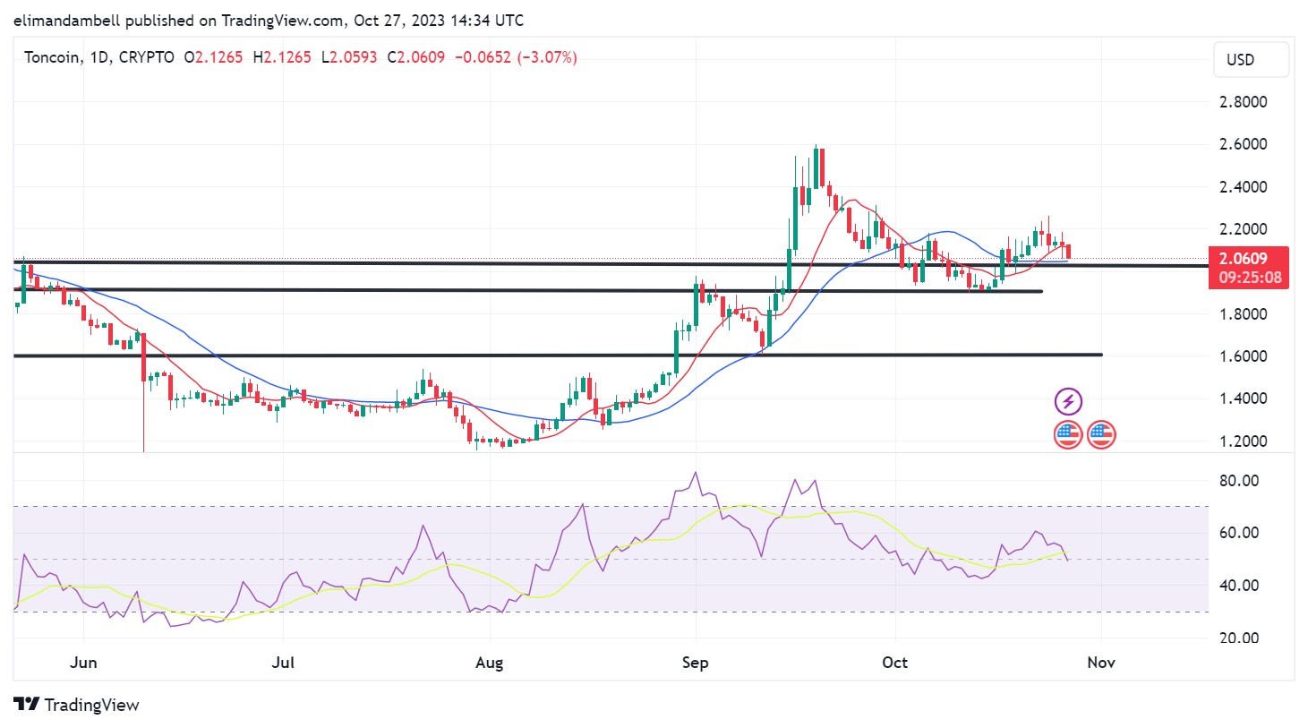 As a result of the decline, toncoin continued to track a one-week low, and close to a key price floor of $2.00.