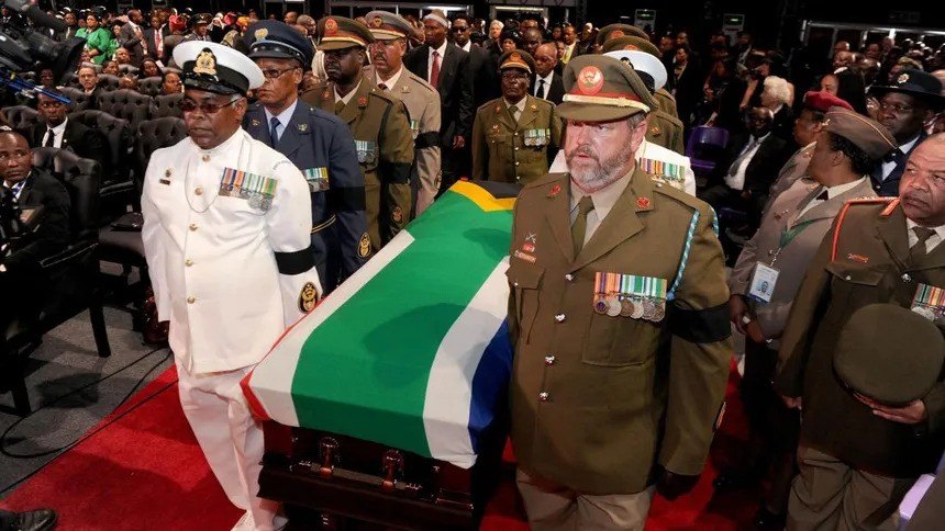 Nelson Mandela died on 5 December 2013 in Johannesburg from complication of respiratory tract infection. He was buried on a family graveyard called Mandela graveyard in Qunu where he had spent his childhood days. Mandela's burial. Photo credit: CNN
