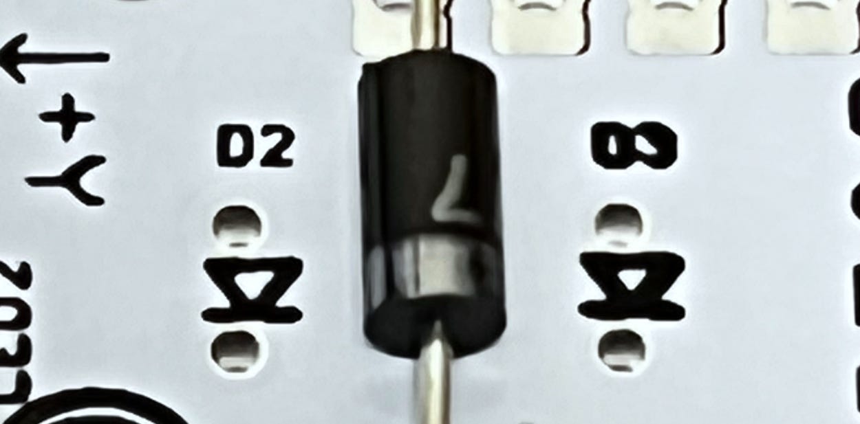 The good old 1N5817 is put into service here. Source: Github.com