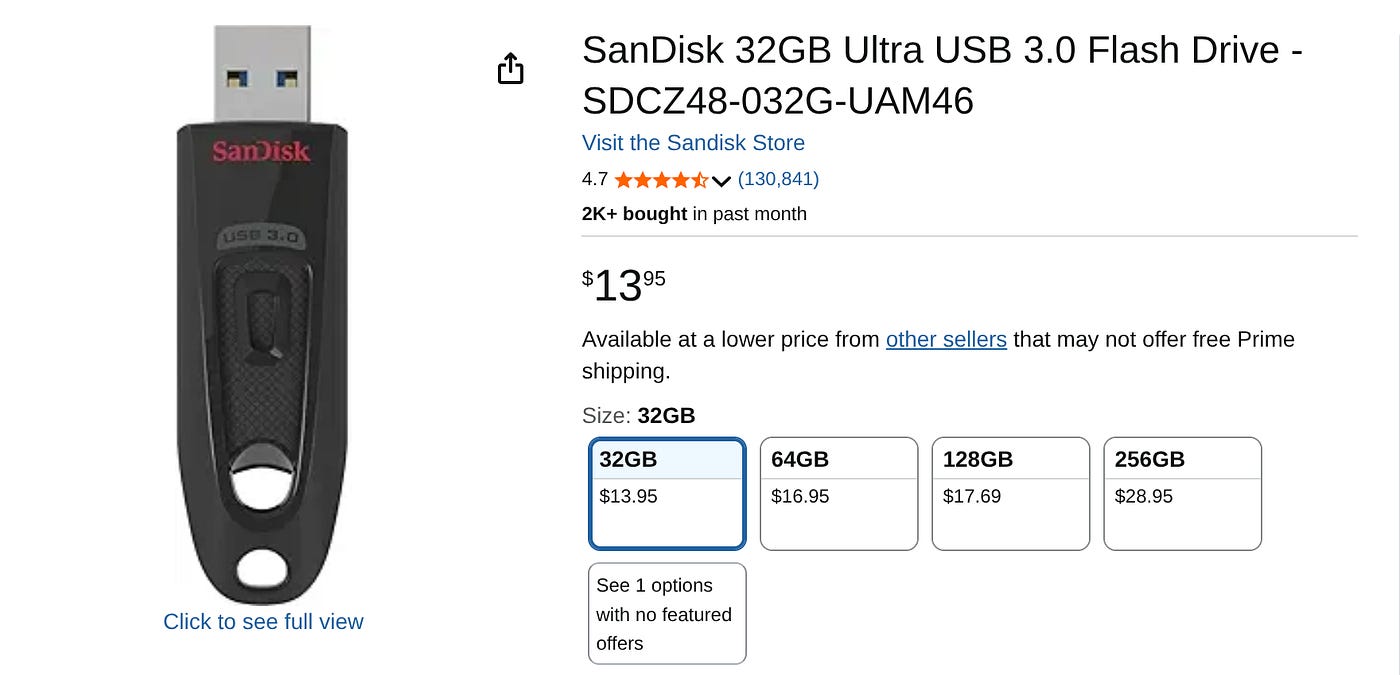 To do this, we’ll need a decent, high-speed USB drive, and this Sandisk Drive from Amazon should do the trick.