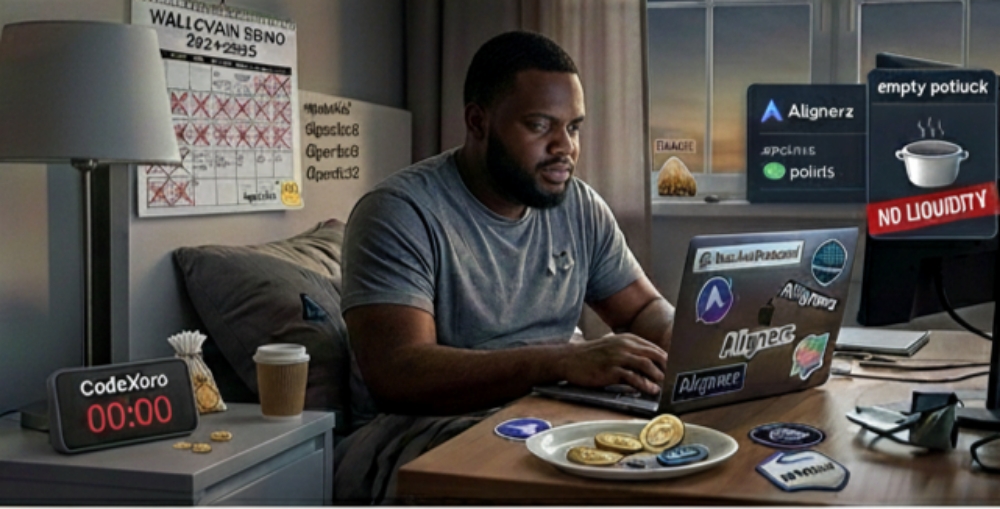 Undeterred, I pivoted like a pro gamer dodging bullets. Enter Alignerz, where I was an early bird, quacking away before the flock even arrived. I built my nest, accumulated those precious quacks, envisioning a payout that would make my bank account sing. Reward time rolls around, and surprise! No liquidity. It's as if they threw a party but forgot to buy the drinks. I felt like that guy who shows up to a potluck with a gourmet dish, only to find everyone else brought empty plates. My quacks echoed in the void, a satirical symphony of unmet expectations.