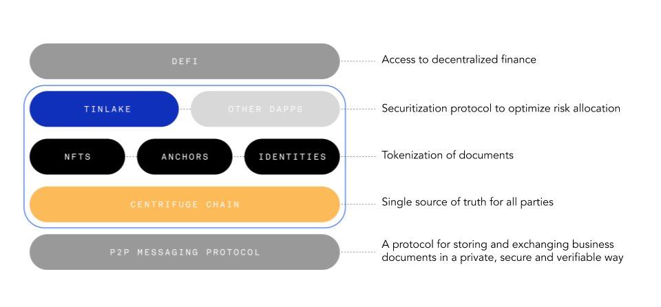 ▫️ Centrifuge Stack: Centrifuge Stack combines a peer-to-peer messaging protocol for secure business document exchange. Built on top of Substrate, Centrifuge Chain acts as an immutable source of truth for document tokenisation and funding through dApps like Tinlake.