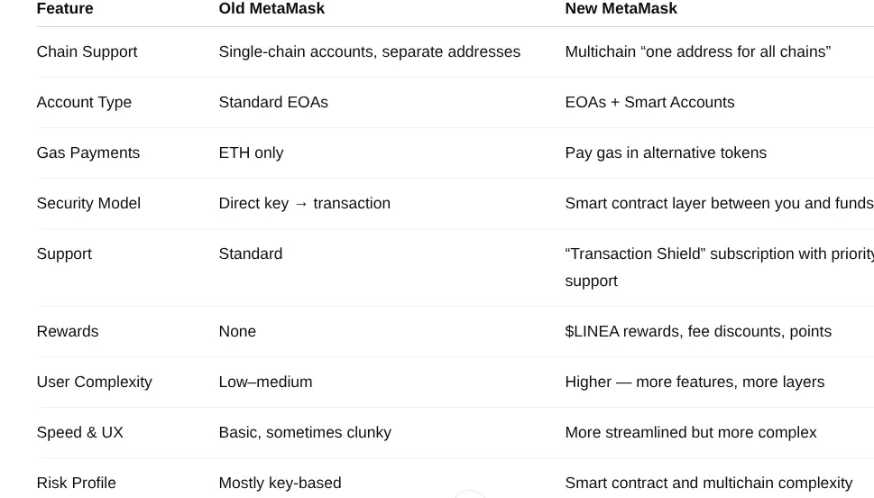 MetaMask now supports multichain accounts so it is one address for all chains which should be an improvement. It has also introduced smart accounts.