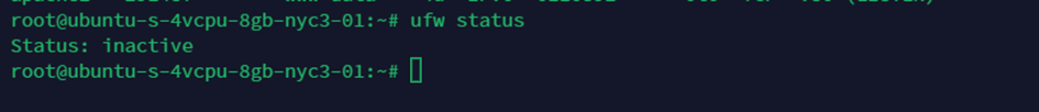 İlk yapılması gereken firewall aktif mi ona bakmanız gerekmekte. Eğer firewall kapalı iken (Status: inactive) node’unuz çalışıyorsa portlar açık demektir. Aşağıdaki komut ile sorgulayın: