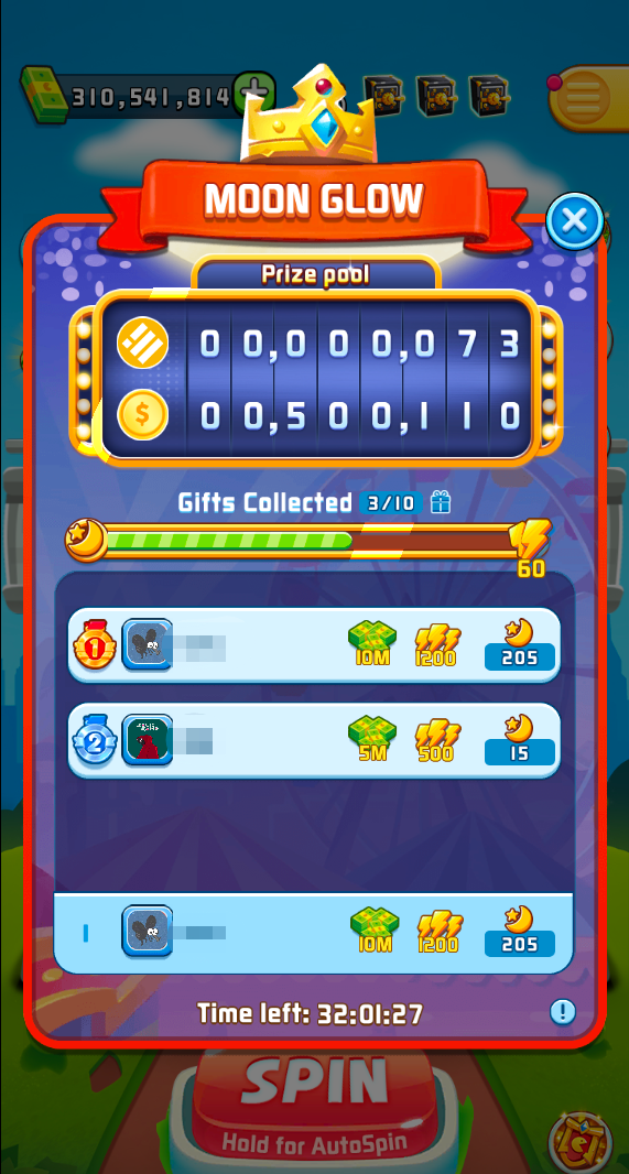 A maximum of 50 Energy, depicted as bolts, is granted to players for the mini-game. Each spin consumes 1 Energy. In the event of energy depletion, players must wait for automatic restoration at a rate of 5 Energy per hour.