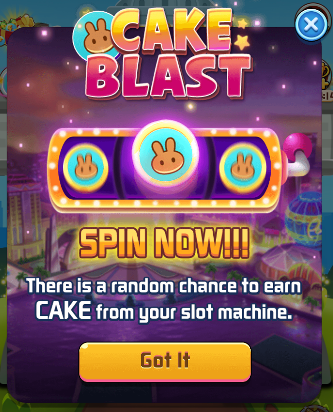 Special Events present opportunities for players to obtain significantly greater rewards through the mini-game. There are four types of Special Events: CAKE Blast, Raid Madness, Attack Madness, and Pineapple Rush. For example, during a CAKE Blast event, players earn CAKE by spinning the wheel.Championship Events