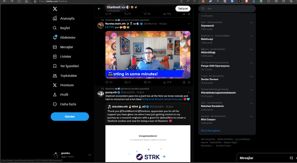 1, they gave 90k Strk tokens to a person and I witnessed this user without even having a wallet. And mostly the greasers who communicated with the team won. As an example, this is enough. Wait, wait, here's another one that might interest you: Onlyfans made an airdrop of 20,000 straks, and the user who ranked first in the network had an airdrop of 1200 straks worth $1.4 million.