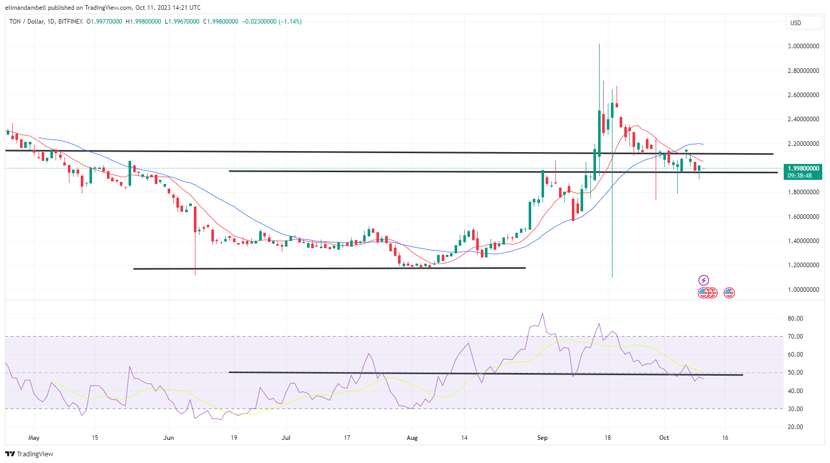 TON/USD peaked at $2.03 earlier in the day, which came hours after hitting a low at the $1.98 mark.