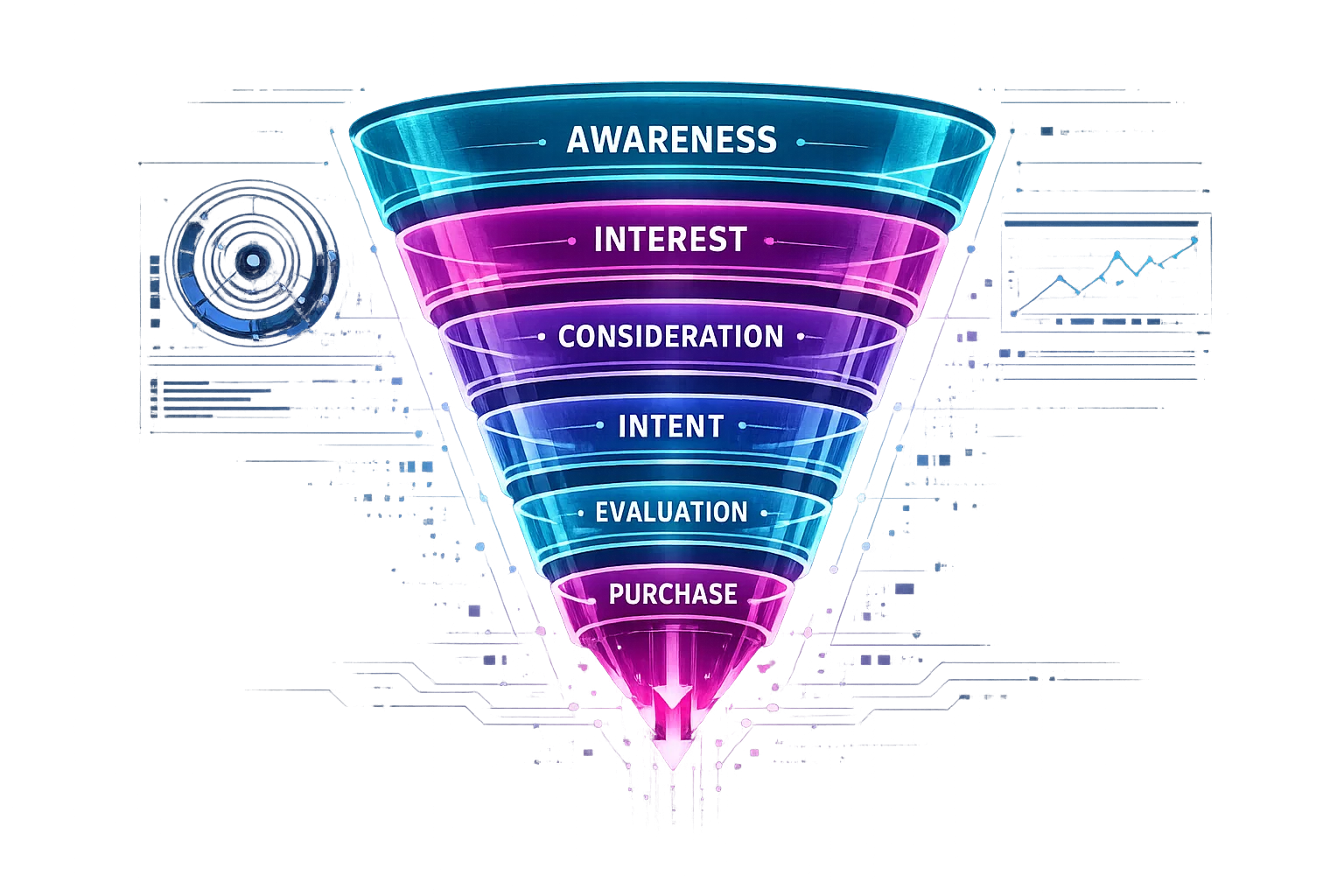 1. Awareness → 2. Interest → 3. Trust → 4. Conversion → 5. Advocacy