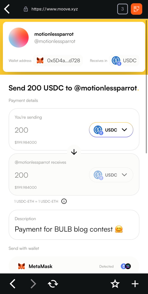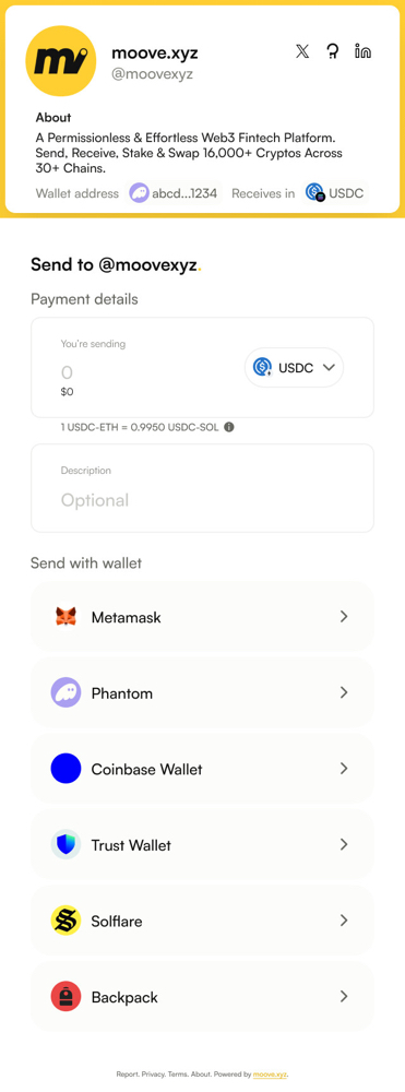 Moove also introduces payment links, which allow anyone to create a simple link that accepts crypto payments.