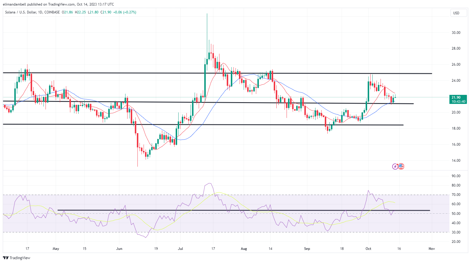 Currently, the Saturday saw shiba inu climb to its highest point since Monday, as bulls made a slight return to the market. The meme coin rose by as much as 4% on Saturday, as the global crypto market cap made gradual gains to start the weekend. Solana was another notable mover, climbing above the $22.00 zone.