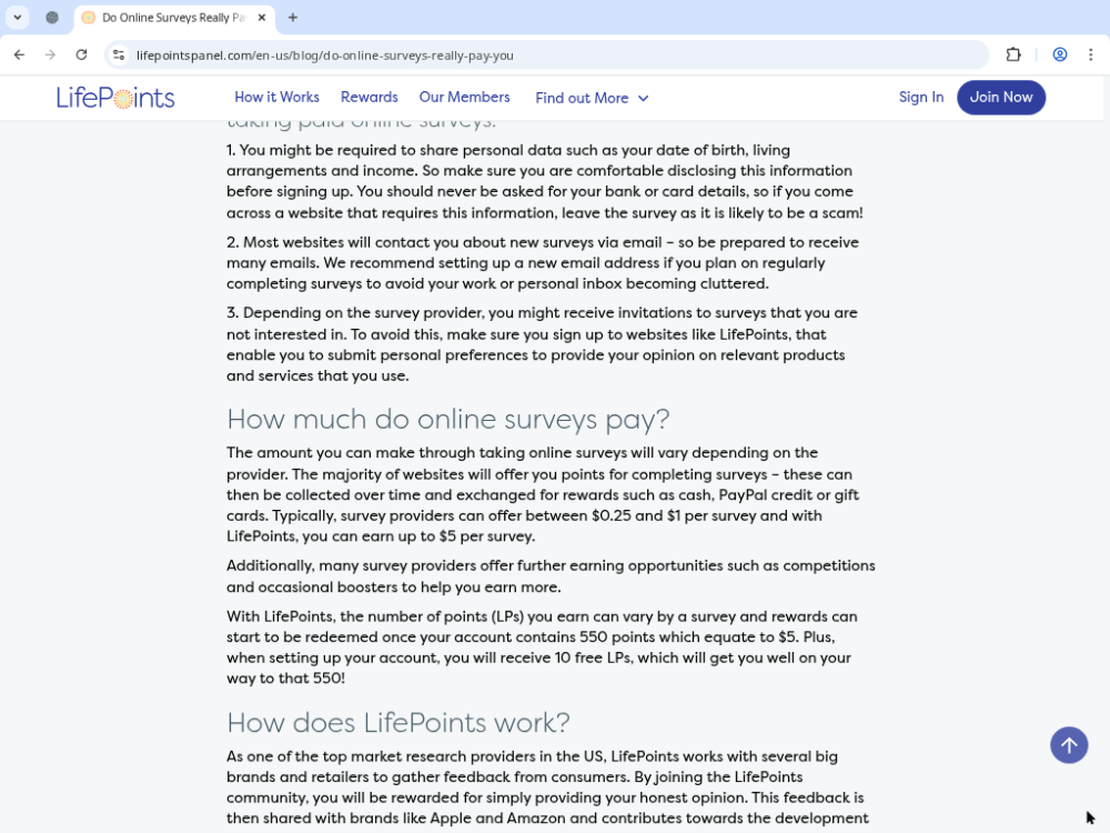 Platforms like LifePoints pay users to answer surveys for companies researching consumer behavior.