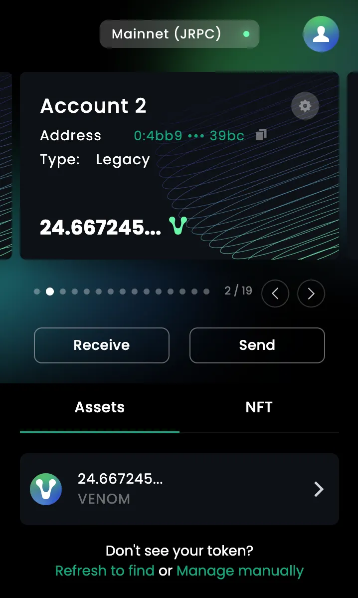 - Venom Wallet — the native non-custodial multiasset wallet of the Venom platform allows users to securely store, send, and receive $Venom and other digital assets. It features an intuitive user interface and enables users to manage their assets easily.