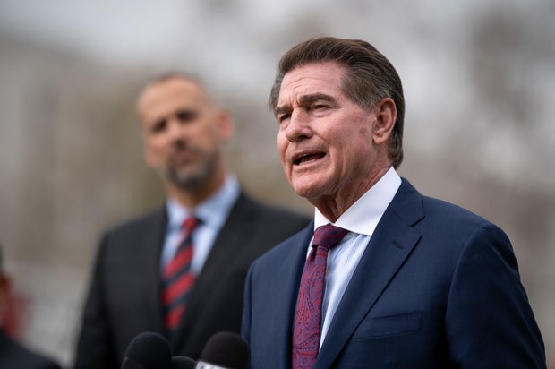 Steve Garvey, Republican candidate for Senate, speaks at a press conference on Tuesday, Feb. 27.