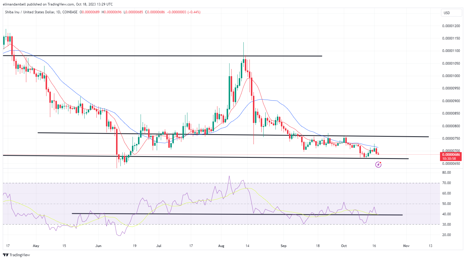 The move saw SHIB drop towards a key support level of $0.00000670, which was last hit on October 12.