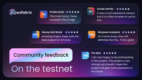 Be a part of this process by joining our testnet and sharing your valuable feedback: https://openfabric.dev