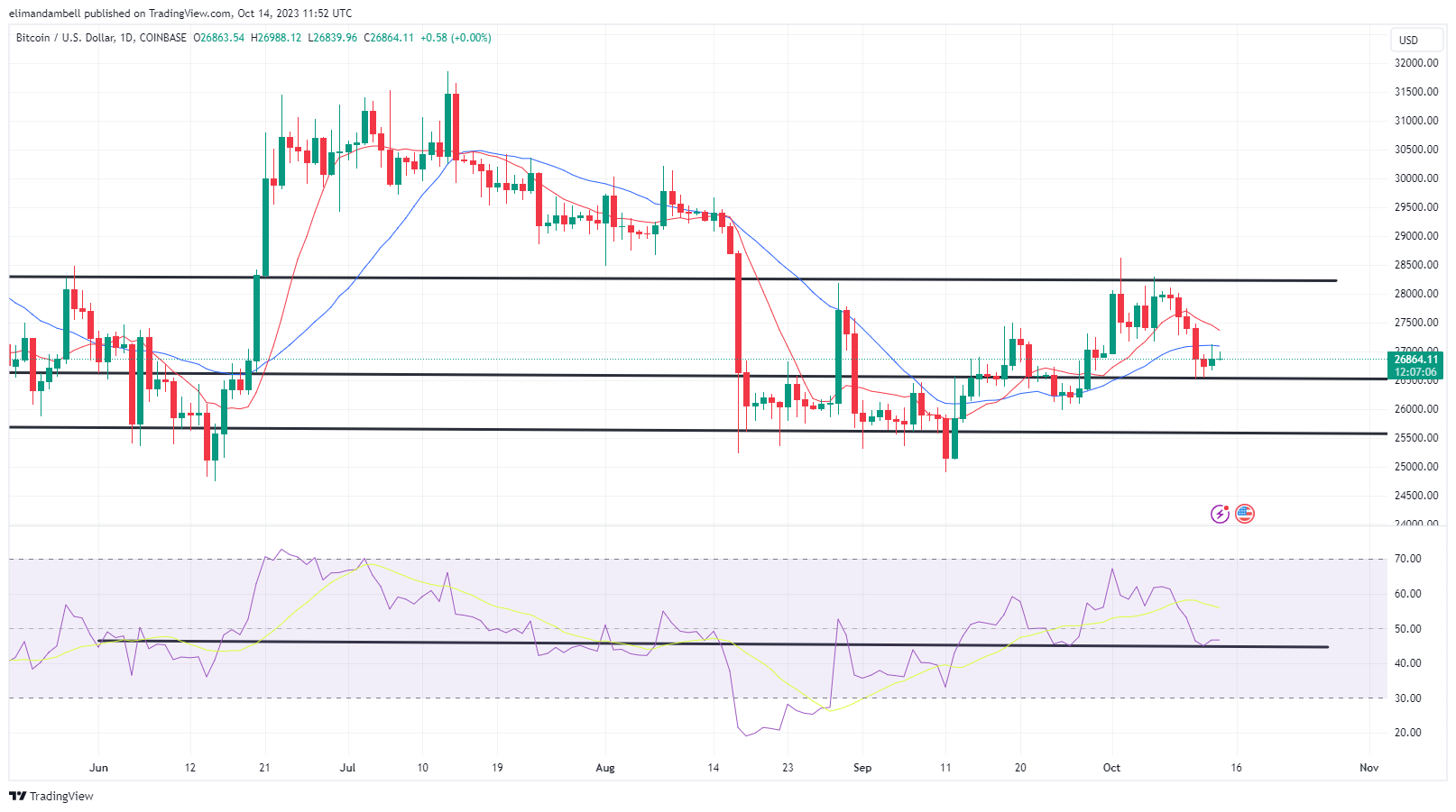 Bitcoin, Ethereum Technical Analysis: BTC Falls on Saturday, Following Brief Spell Above $27,000