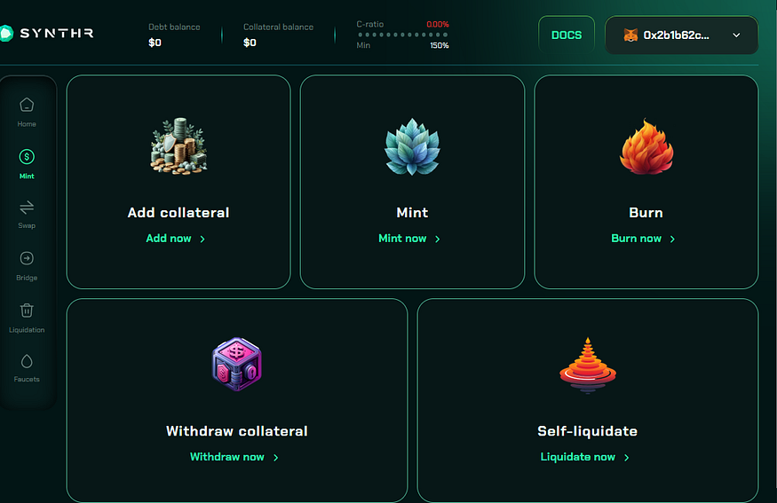 - Go to https://mvp.synthr.io/ Connect Wallet