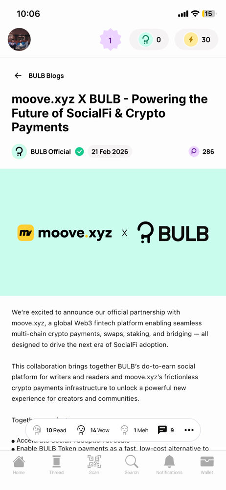 One of the most exciting recent developments is BULB’s partnership with @moove.xyz—a Web3 fintech platform that handles crypto payments, swaps, staking, and bridging across 30+ chains.