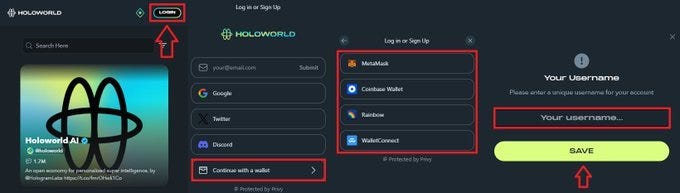- At First Head over to this link and Click Login and Signup with your Metamask wallet and Keep an Username. https://www.holoworldai.com/