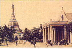 In , King Thayawady decided that King Alaungpaya's town was too vulnerable to attack from the river and that a new town should be built further inland, about a mile and a quarter from the river. A mud wall sixteen feet high and eight broad was to surround the town and a ditch to run alongside it. The Pagoda was worked into the defences of the town which was about three-quarters of a mile away. Thus the Shwedagon formed the north-east corner of the town. The east border of the town ran along Shwedagon Pagoda Road ridge. The southern boundary was slightly south of the road where the National Health Laboratory now stands. The west road ran roughly along Myoma Kyaung Lan, while the north face cut across Pyay Road and People's Park. Water was supplied by thirty wells. The town was named Aung Myei Aung Hnin, "Victory Soil, Victorious Ejector". Endawya Pagoda in Myoma Kyaung lan remains from the visit of Ling Thayawady. Though King Thayawady's town was occupied for residence, the old Yangon continued to be populous. Commerce and industry and all connected with trade and the port were still situated there. A crane was placed at the new King's Wharf at Lanmadaw. So King Alaungpaya's Yangon continued to be the business town. In the end,King Alaungpaya's town existed for only ten years because by the war of 1852, Lower Myanmar was annexed by the British and a new Yangon was planned. A British force of 6000 men with thirty-five pieces of artillery, escorted by fifteen warships appeared at the mouth of Yangon River on the 1st April 1852. Posts and stackade guarding the River were attacked and taken on the 5th.On the 11th the ships crossed the bar and took up position opposite the old town. The next day, Theinbyu, "the White House Stackade" was taken. Meanwhile, a certain Mr.C.M.Crisp, a foreigner residing in Yangon, who had previously sent information about the defence of Yangon, had told Capital Latter that it would be better to direct the attack at the eastern entrance of the Pagoda which was very inadequately defended. A detachment then rushed the east entrance and gained the Pagoda platform. Myanmar forces were compelled to retire by the southern and western gates of the town. The British lost sixteen killed and one hundred and thirty-three wounded. Two majors also died. The British annexed lower Myanmar by a proclamation dated 20th December 1852. On the 21st the proclamation was read in Yangon. Dr. William Momtgomery who had come along as Superintendent Surgeon with the British troops proposed a town with a checkered pattern of streets based on a road which ran along the Strand. Lt. Fraser of the Bengal Engineers, who had been assigned the design task, largely followed Dr. Montgomery's plan. Fraser's detailed proposal dealt with the problem of flooding at high tide. However, his plan had to be modified to provide for a larger city. Three kinds of roads were incorporated into the design. Roads running west to east were broad roads 160 feet wide. Roads running south consisted of two small 30 feet wide roads, one medium-sized road 50 feet wide, two more 35 feet wide roads and then one broad 100 feet wide road. This order was repeated from west to east. The smaller roads were numbered, while the medium and broad roads were given names, some for eminent persons of that time. As laid down, there was the 100 feet wide Lanmadaw Road, followed by 17th and 18th street, which were small roads, then the medium 58 feet road Sint-O-Dan Road, next the smaller 19th and 20th streets, followed by 100 feet wide Latter Road, followed again by the two numbered small roads 21th and 22th streets. The roads running paralle west to east were the Strand Road, Merchant Road, Dalhousie Road (Maha Bandoola), Fraser Road, (Anawrahta) and Montgomery/ Commissioner Road (Bogyoke Aung San) then a medium 50 feet wide road known as Bank Road. Yangon, which had become the model city in South-east Asia, suffered great damage during the Second World War. Its buildings, roads and drainage systems were destroyed. Multicoloured insurgents added to the problem after Independence in 1948. This led to a massive influx of refugees into the city where enough housing was not available to accommodate them. People simply settled where they pleased. The city was now covered with small shacks of bamboo and thatch causing serious fire hazard. Drainage was blocked with refuse. Traffic on motor roads and sidewalks was impeded by huts and shops. People squatted on public land, gardens and parks. Disease became rampant and the mortality rate increased .Fires often broke out, destroying thousands of homes in the squatter slums.