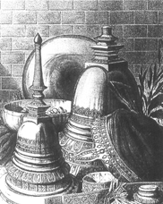 The brothers returned home and made landfall at Pagoda Point in the south-west coast of Myanmar. They sent word to king Ukkalapa of their arrival with the sacred Hairs. The King welcomed the Hairs with great ceremony at Asitanzana, north-west of present Yangon. The king and the brothers next sought for a man who could tell them the location of Singuttara Hill. No human knew the location but Sakka, King of the nats did, and guided them to the Hill. Singuttara Hill is known by seven names of which one is Trikhumba, meaning 'three pots' and signifying three pot-shaped hills. Tikhumba became Tikun and Dagon and later Changed to Lagun in Mon. When the brothers asked Sakka where the Hairs should be shrined, Sakka could not tell them where the earlier relics were enshrined because they were of such antiquity and he was not that old. However, Sule Nat knew where Kakusandha Buddha's staff was enshrined, Yawhani Nat knew where Konagamana Buddha's water-dipper was enshrined. Hmawbi Nat revealed that he had been assigned to guard the sacred objects. Finally, Gautama Buddha's Hairs were enshrined and stupa consecrated on the full moon day of Tabaung (March 6,c.588 B.C.) Along time after that, there that, there being no one to worship at the Lagun shrine, it fell into ruin and was covered with jungle.Tradition states that 200 years after Buddha's Parinirvana in 543 BC. Sona and Uttara, two monks from Sri Lanka brought King Asoka to the Pagoda. The King had the jungle cleared and the Pagoda repaired. In the fifth century A.D. King Duttabaung paid homage at the Pagoda. In the 11th century, King Anawratha of Bagan offered gold and silver umbrellas and built a pagoda near the town of Twante across the Yangon River. Dalla, which is now a town on the bank opposite Yangon, was then located on the Twante Ridge and was more important than Dagon. Dagon at that time lay in low lying often water-logged land. Sule Pagoda, now in downtown Yangon, stood on a small island in the swamp, to the west down to he Hlaing River and Yangon /River to the south .The Shwedagon (then called Kyak Lagun in Mon) was reached across a causeway.