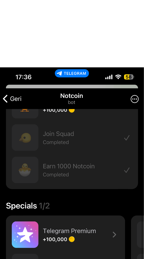 Yine NOTCOIN'de yukarıda anlattığım gibi 'Boost' sekmesi var dostlar. Yukarıda anlattığımdan tekrar anlatmıyorum. Ama gördüğünüz gibi esas olan şey 'Tap Bot' satın almak. Bu sayede siz kazım yapmadan bot sizin yerinize yapacak dostlar. Sağlıcakla kalın.