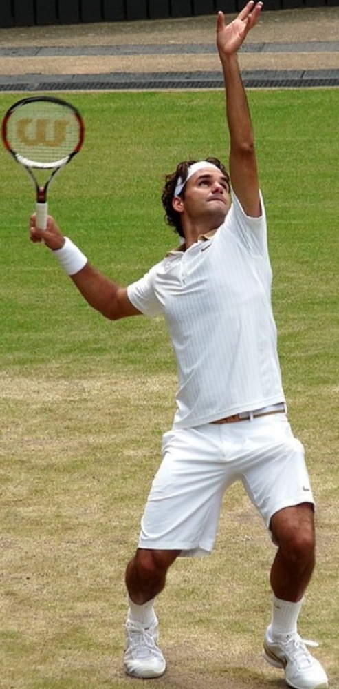 In 2003, Federer won his first Grand Slam singles title at Wimbledon, beating Andy Roddick in the semifinals and Mark Philippoussis in the final.[57][58] In doing so, he joined the likes of Björn Borg, Pat Cash and Stefan Edberg as the only singles players to win both the junior and senior Wimbledon titles.[29] In August he had a chance to take over the No. 1 ranking for the first time from Andre Agassi if he made it to the Montreal final. However, he fell in the semifinals to Roddick, in a final-set tiebreaker, leaving him 120 points behind Agassi.[59] This, coupled with early losses to David Nalbandian at Cincinnati and the US Open, denied Federer the chance to become No. 1 in 2003.[60]