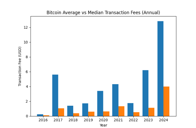The subsidy halves roughly every four years which plays a part in the scarcity aspect but over time, fees will have to play a larger part in revenue for miners and I guess the question will be 'are enough people willing to pay for that block space'? If we look back Bitcoin fees have not just gone up in a straight line, they spike during times of demand and fall back down when things get quieter. Looking at averages it makes a Bitcoin transaction look expensive because those huge spikes pull up the average but if we look at median fees, they are usually lower.