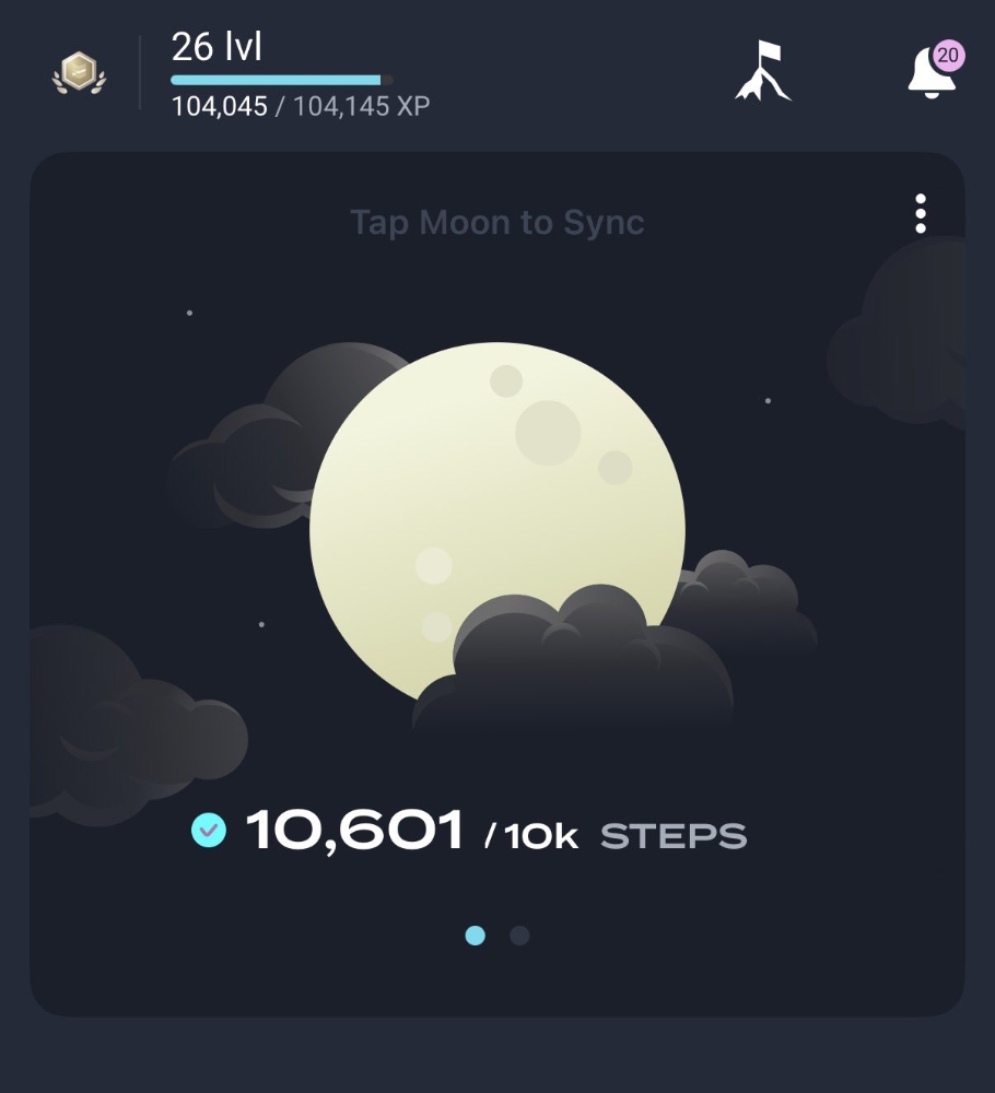 A distinctive feature of the app is its moon-phase progress design, where a growing moon symbolizes a user’s fitness progress — making daily activity both visual and rewarding.