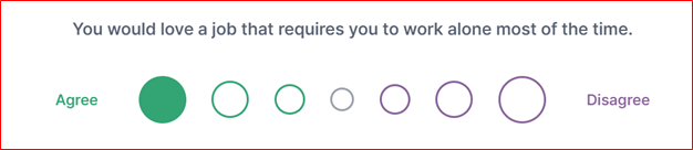 You would love a job that requires you to work alone most of the time. Yes, that's exactly right! I flourish in environments with less external stimulation. The quietness and solitude enable me to focus more intensively on my work, think creatively, and yield high-quality outcomes. Being constantly surrounded by people and continuous interactions exhausts me. After engaging in social interactions, I often need to recharge and restore my energy.