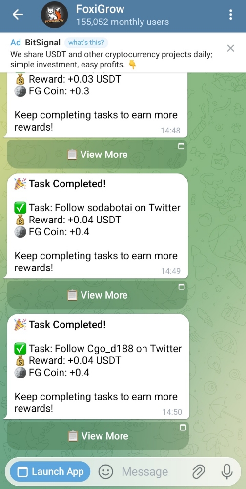 How this works is that brands pay Foxi Grow for marketing service (social media pages growth, engagements, etc) and Foxi Grow then pays Telegram users to complete this marketing tasks.