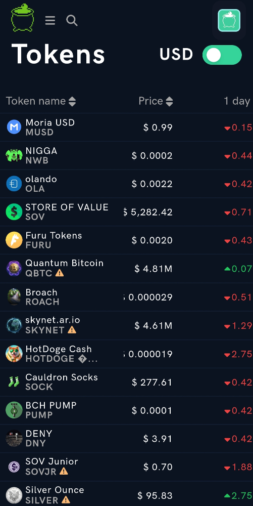 CashTokens are BCH’s native token standard, supporting fungible tokens, NFTs, and other programmable assets. These tokens can be minted and traded on Cauldron. Examples of tokens actively traded on Cauldron include,