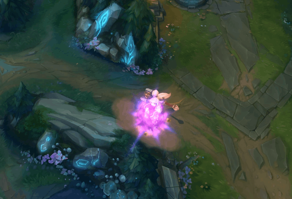 Poppy swings her hammer, dealing damage and creating a zone that will slow enemies and explode after a delay.