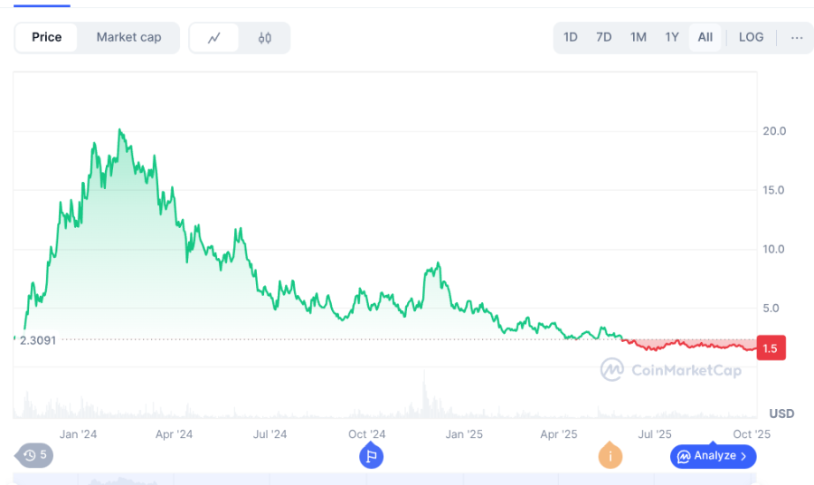 Token unlocks, There were large unlocks which have caused downward pressure on the price. A big cliff unlock (of many millions of tokens) triggered negative sentiment with holders.