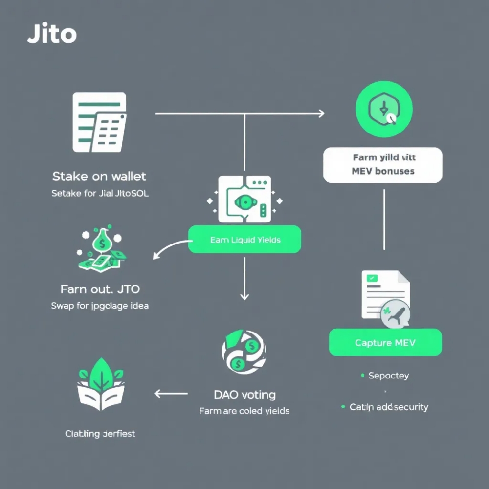 Jito isn't just staking—it's a protocol that bundles transactions intelligently to capture MEV, then shares profits via JitoSOL (a liquid version of staked SOL).