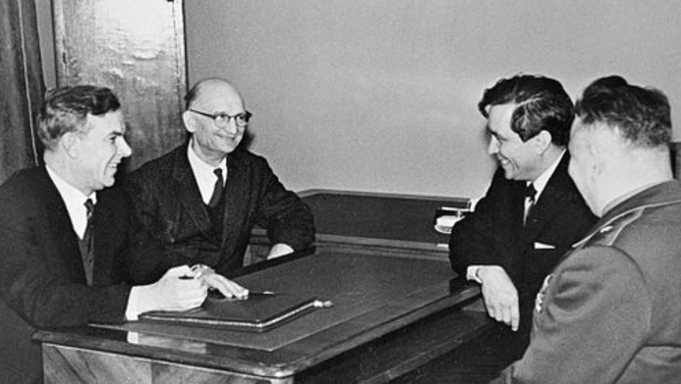 Abel would eventually be returned in a prisoner swap later in the Cold War. That’s him, second from left in 1964. Source: Wikipedia.