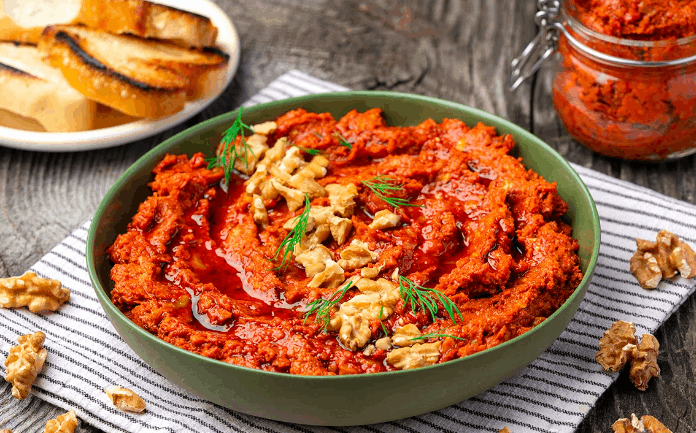 A fantastic combination of red pepper, walnuts, and olive oil, Muhammara holds a significant position in Turkish cuisine. Its intense red color and spicy taste add vibrancy to the tables, especially favored during the winter months.