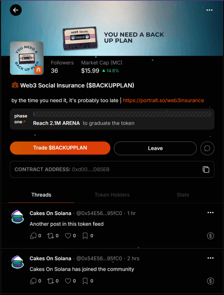 Our community is $BACKUPPLAN and below is the process on how to become part of our community. https://arena.social/community/0xd00F616Fa78c24DA8a8075e466858Be20E8D85EB