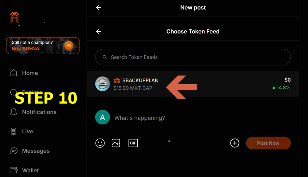 Select $BACKUPPLAN from the list of tokens you hold the minimum threshold to post and then create your post as normal.