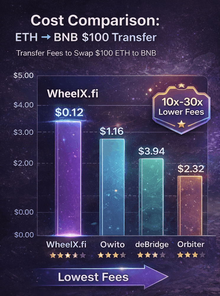 - Fee Efficiency: While generic high-fee bridges charge 3−20 for a 100Ethereum−to−BNBswap,WheelXhasdemonstratedtheabilitytoexecutethesametransactionforaslittleas∗∗0.12**.